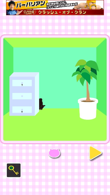 引き出しの後ろに「くろねこ」がいます。タップして一匹目をゲット。