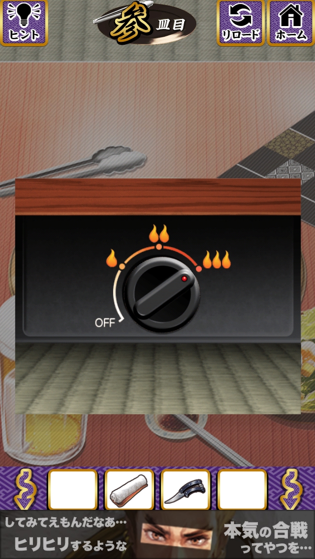 左、左と移動して座布団の下のハサミを