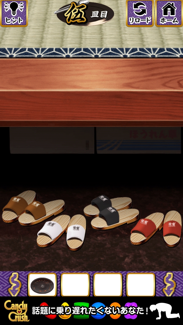 空のお皿の漢数字をサンダルの色順に