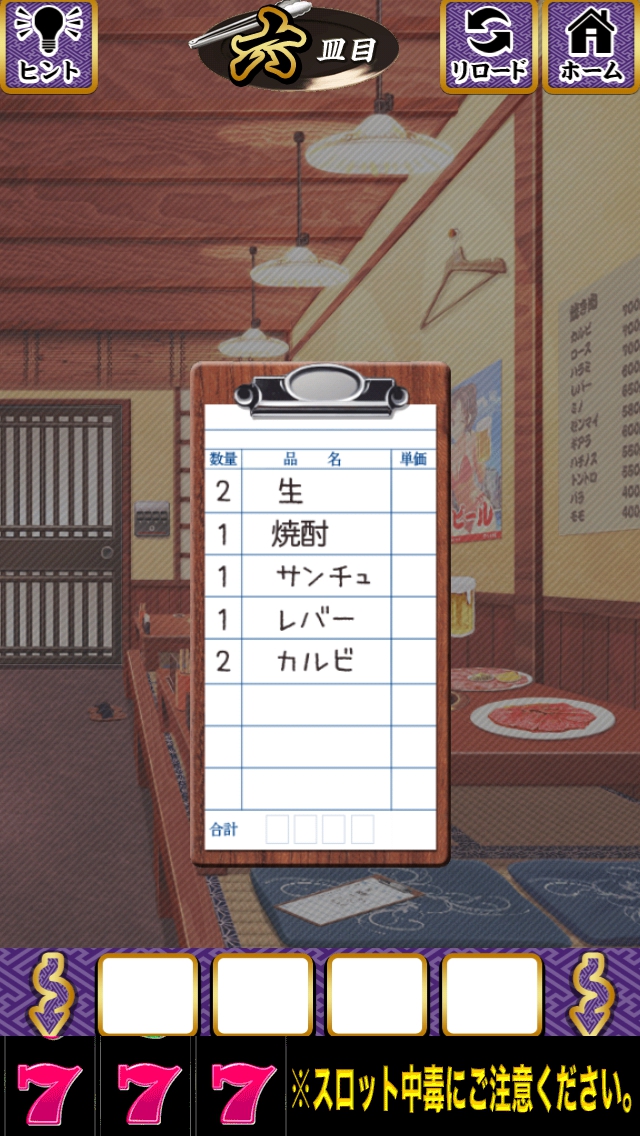 焼肉屋2 -yakiniku escape- 攻略 六皿目|脱出ゲーム攻略
