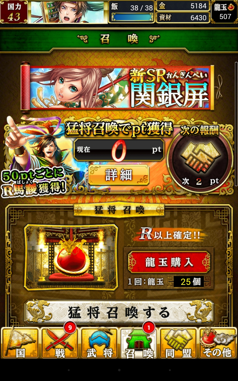 2013/12/10(火)13:59まで、猛将召喚1回につき2pt貰えるポイントで