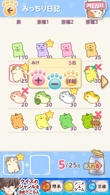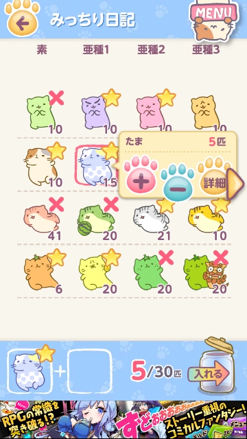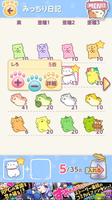 「みけ」「たま」「しろ」「さいけ」の合成レシピ