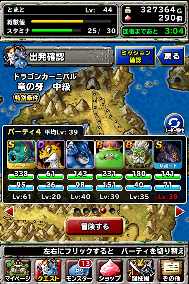 中級(スタミナ消費10)経験値約500 ゴールド約700