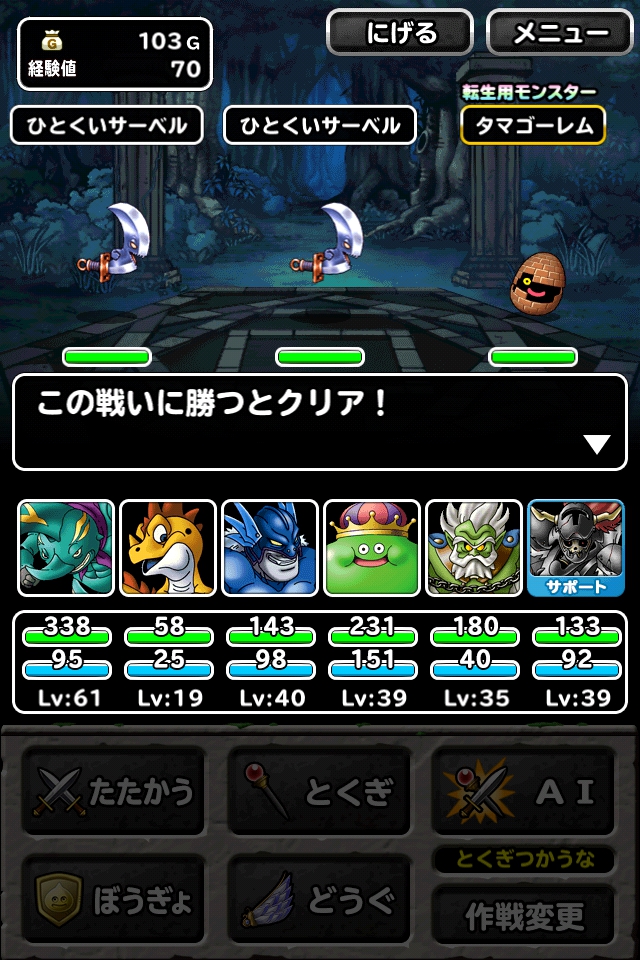 ・サポートを含む2体以下のptでクリア(メタルスライム1体)
