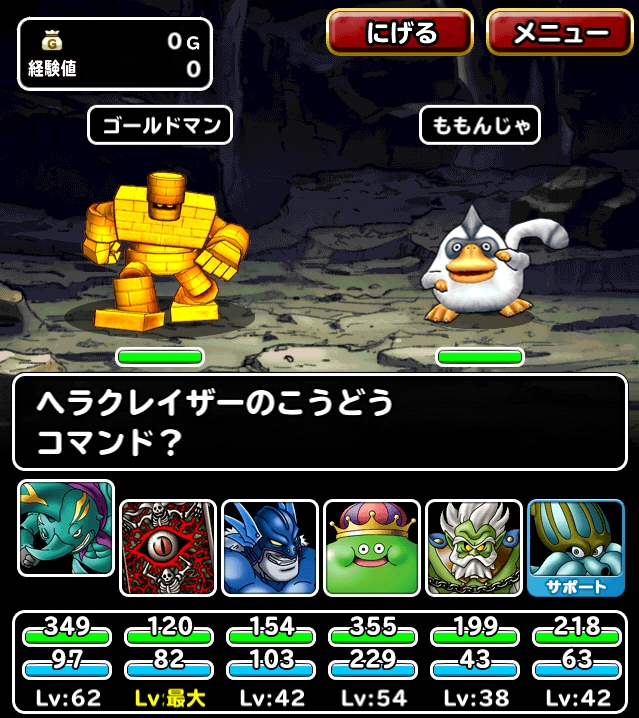 確認できたモンスターはスライムベス、おおにわとり、ももんじゃ、ビッグアイ、ミノーン、ゴールドマン、あくまのつぼでした。