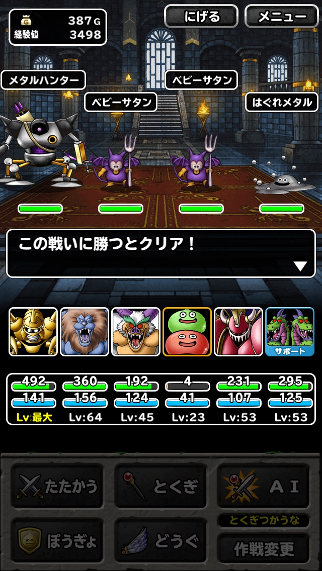 倒したはぐれメタルの数で得られる経験値に大きな差ができ、1体倒すと1000の経験値がもらえます。