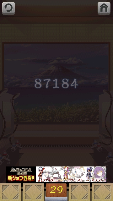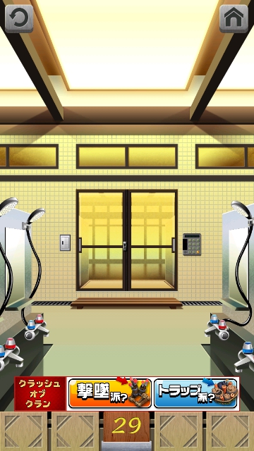100銭湯 攻略 脱出法 ステージ26~30 |Page4 脱出ゲーム 更新日時:2015年7月23日 1:53 AM ページタイトルとURLをコピーする ステージ29 ドアの左のスイッチを押すと、暗くなります。 スワイプして富士山の画面へ。 87184 と浮かびました。 電気をつけます。 この数字をドアの右の装置に入力して、 エンターを押すと 富士山の絵から鍵が現れます。 鍵を取ってドアを開けましょう。 ページ: 1 2 3 4 5 前ページへ 次ページへ SQOOLのYouTubeチャンネル スポンサーリンク