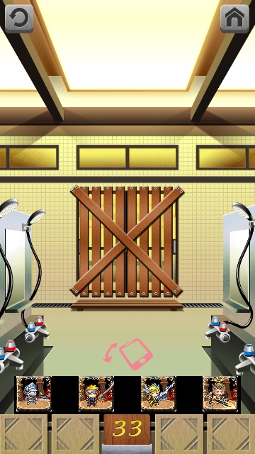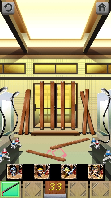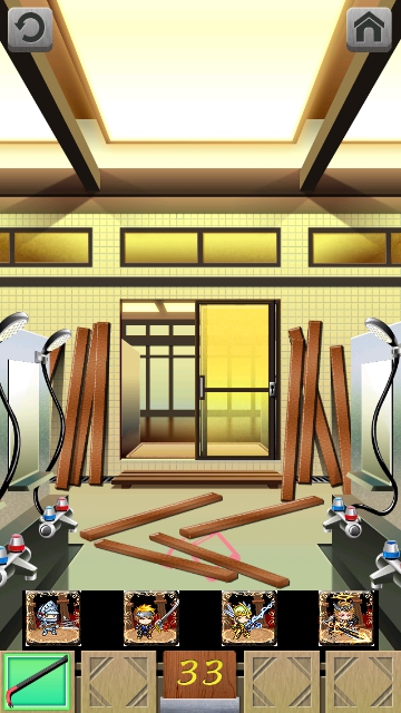 100銭湯 攻略 脱出法 ステージ31~35 |Page3 脱出ゲーム 更新日時:2015年7月23日 1:53 AM ページタイトルとURLをコピーする ステージ33 スワイプして、富士山の画面へ。 椅子や洗面器が山積みです。 携帯本体を振ると 消えてバールが現れます。 これを使って ドアの木材をどんどん取り除いていきます。 全部、木材を取り除いたら ドアを開けて脱出しましょう。 ページ: 1 2 3 4 5 前ページへ 次ページへ SQOOLのYouTubeチャンネル スポンサーリンク