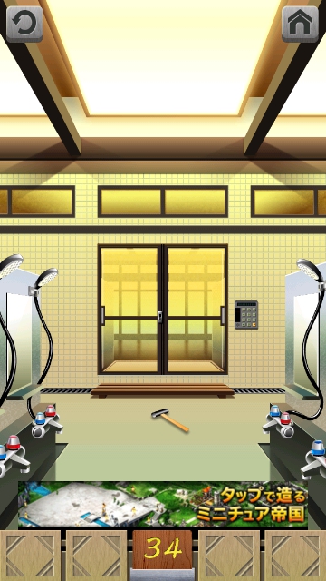 100銭湯 攻略 脱出法 ステージ31~35 |Page4 脱出ゲーム 更新日時:2015年7月23日 1:53 AM ページタイトルとURLをコピーする ステージ34 スワイプして富士山の画面へ。 1591 とあります。 携帯を斜めにするマークもあります。 1519 ドアの右の装置に入力して エンターを押します。 すると、ドアが一瞬は開いて、また閉まってしまいます。 携帯本体を斜めにすると 左からカナヅチが滑ってくるので、取ります。 これでドアを叩き割って 脱出しましょう。 ページ: 1 2 3 4 5 前ページへ 次ページへ SQOOLのYouTubeチャンネル スポンサーリンク