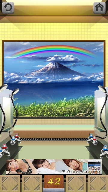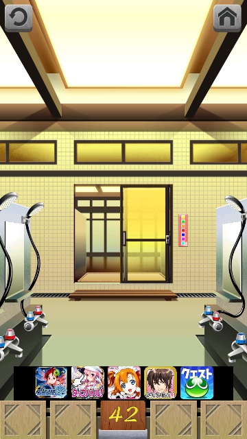 100銭湯 攻略 脱出法 ステージ41~45 |Page2 脱出ゲーム 更新日時:2015年7月23日 1:53 AM ページタイトルとURLをコピーする ステージ42 スワイプして富士山の画面へ。 虹がかかっています。色が上から 赤 オレンジ 黄 緑 水 青 紫 これをドアの右の装置に 入力して色を変えます。 (一番下は紫です。) ドアが開きます。 ページ: 1 2 3 4 5 前ページへ 次ページへ SQOOLのYouTubeチャンネル スポンサーリンク