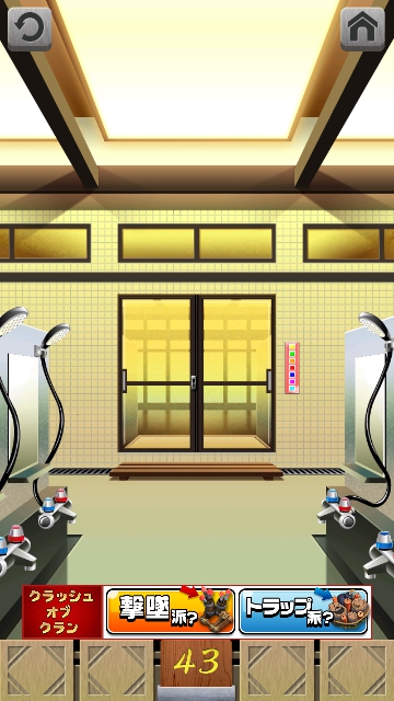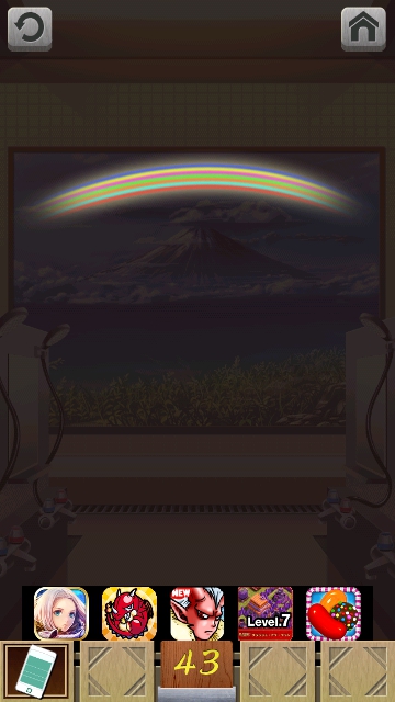 100銭湯 攻略 脱出法 ステージ41~45 |Page3 脱出ゲーム 更新日時:2015年7月23日 1:53 AM ページタイトルとURLをコピーする ステージ43 スワイプして富士山の画面へ。 虹があります。 右の洗面台を調べると 携帯電話があるので取ります。 拡大して ライトを一番下に下げます。 すると部屋が暗くなり 光る虹に変わります。色が上から 青 黄 紫 緑 オレンジ 水 赤 これをドアの右の装置に 入力して色を変えます。 (一番下は赤です。) ドアが開きます。 ページ: 1 2 3 4 5 前ページへ 次ページへ SQOOLのYouTubeチャンネル スポンサーリンク