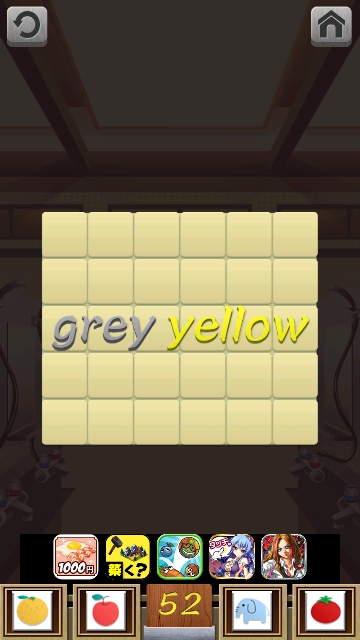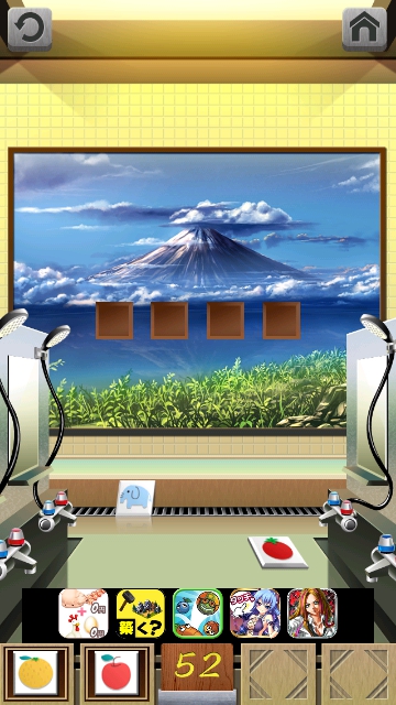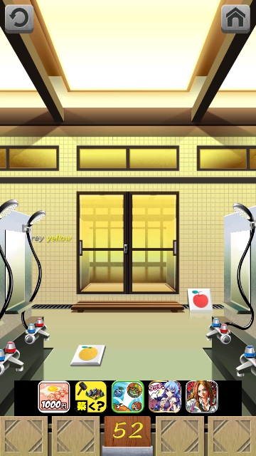 100銭湯 攻略 脱出法 ステージ51~55 |Page2 脱出ゲーム 更新日時:2015年7月23日 1:53 AM ページタイトルとURLをコピーする ステージ52 りんごとオレンジのパネルを取ります。 スワイプして富士山の画面へ。 ゾウとトマトのパネルを取ります。 ドアの左に英語のパネルがあります。 しりとりになっています。 ですので 「apple→elephant→tomato→orange」 ( りんご→ゾウ→トマト→オレンジ ) とパネルをはめていきます。 ドアが開きます。 ページ: 1 2 3 4 5 前ページへ 次ページへ SQOOLのYouTubeチャンネル スポンサーリンク