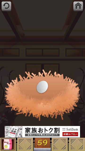 100銭湯 攻略 脱出法 ステージ56~60 |Page4 脱出ゲーム 更新日時:2015年7月23日 1:53 AM ページタイトルとURLをコピーする ステージ59 ドアの右下に鳥のエサがあるので、取ります。 天井左に鳥の巣があります。 調べると、卵があります。取りましょう。 スワイプして富士山の画面へ。 タオルが落ちています。調べます。 拡大して 卵をのせます。 すると ひよこが生まれます。 鳥のエサをあげましょう。 すると ひよこが大きくなって、飛んでいきます。 スワイプして鳥の巣へ。 鍵を取ります。 鍵を使って出口を開けましょう。 ページ: 1 2 3 4 5 前ページへ 次ページへ SQOOLのYouTubeチャンネル スポンサーリンク