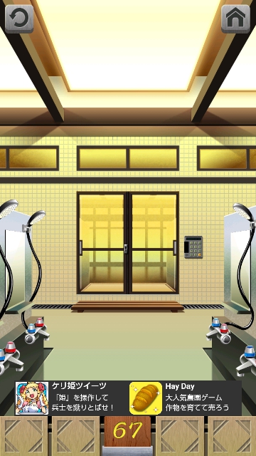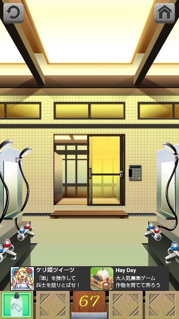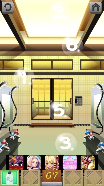 100銭湯 攻略 脱出法 ステージ66~70 |Page2 脱出ゲーム 更新日時:2015年7月23日 1:53 AM ページタイトルとURLをコピーする ステージ67 スワイプして富士山の画面へ。 左の洗面台にボトルがあります。 調べましょう。 ボトルをタップして、手に入れます。 洗面台の下に置いて 水を入れます。 適当なところで、また手に入れます。 スワイプでドアの画面へ。 ボトルを選んで携帯本体を振ると 246531↲ と泡が出ました。 (数字はランダムに変わります) これをドアの右の装置に 入力してエンターを押すと ドアが開きます。 ページ: 1 2 3 4 5 前ページへ 次ページへ SQOOLのYouTubeチャンネル スポンサーリンク