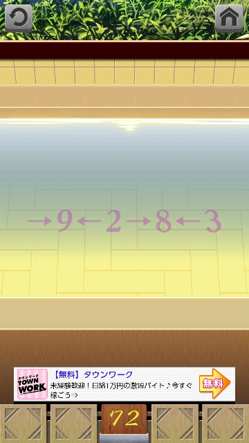 100銭湯 攻略 脱出法 ステージ71~75 |Page2 脱出ゲーム 更新日時:2015年7月23日 1:53 AM ページタイトルとURLをコピーする ステージ72 スワイプして富士山の画面へ。 湯船を調べましょう。 右に9 左に2 右に8 左に3 スワイプしてドアの画面へ。 ドアの右のダイヤルを使います。 携帯を右に傾けて9 そのままで 左に 2 傾けます。 そのままで 右に8 傾けます。 最後に 左に 3 傾けると ドアが開きます。 ページ: 1 2 3 4 5 前ページへ 次ページへ SQOOLのYouTubeチャンネル スポンサーリンク