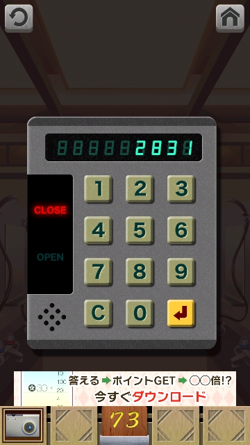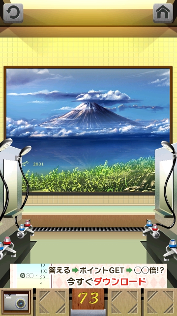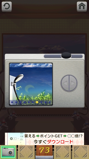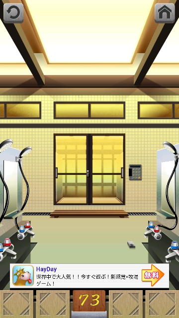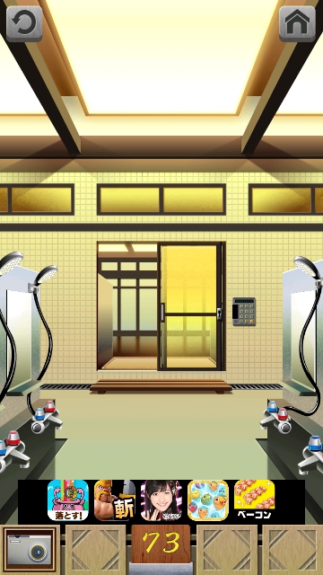 100銭湯 攻略 脱出法 ステージ71~75 |Page3 脱出ゲーム 更新日時:2015年7月23日 1:53 AM ページタイトルとURLをコピーする ステージ73 床にデジカメがあるので、取ります。 左の洗面台に 電池があります。 スワイプして富士山の画面へ。 右の洗面台の床に2 本目の電池があります。 デジカメを拡大して タップで横にして、フタを開けて 2つの穴に 電池を入れます。 すると再生できるので 丸いボタンの►で送っていくと シャワーの下に月が浮かんでいるシーンがあります。 月があった場所をタップすると 2831 これをドアの右の装置に 入力して、エンターを押すと ドアが開きます。 ページ: 1 2 3 4 5 前ページへ 次ページへ SQOOLのYouTubeチャンネル スポンサーリンク