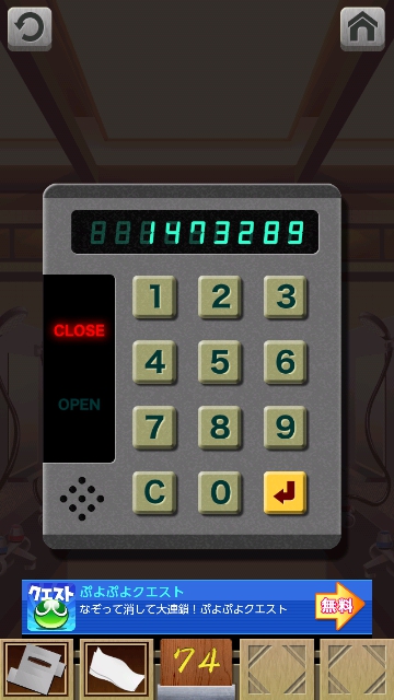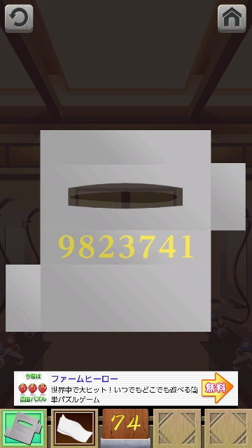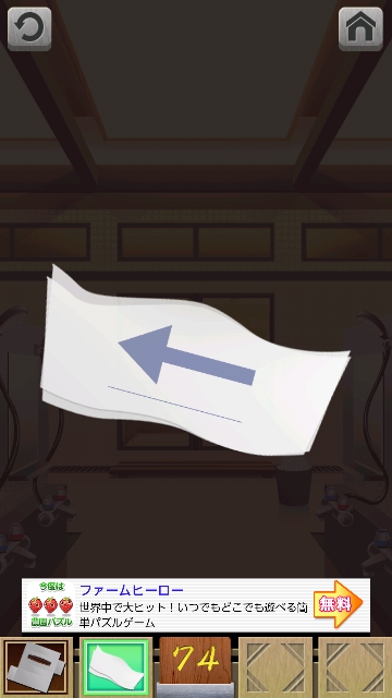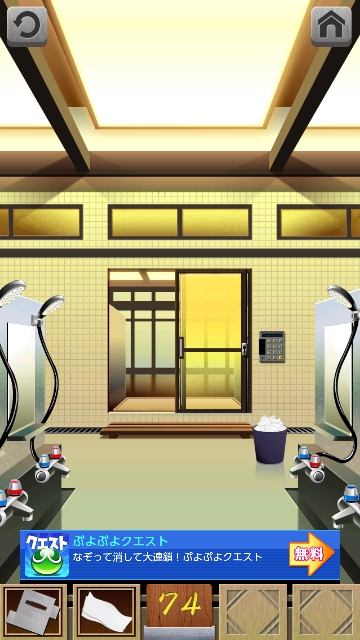 100銭湯 攻略 脱出法 ステージ71~75 |Page4 脱出ゲーム 更新日時:2015年7月23日 1:53 AM ページタイトルとURLをコピーする ステージ74 ごみ箱とティッシュがあります。 ティッシュを手に入れて、調べます。 紙をタップすると次々に紙が出てきます。 この紙を ゴミ箱に捨てていきます。 繰り返すと最後に 9823741 と出ます。 ここで最後に残った紙を開くと 右から左の←が出るので、数字を逆に読み 1473289 これをドアの右の装置に 入力して、エンターを押すと ドアが開きます。 ページ: 1 2 3 4 5 前ページへ 次ページへ SQOOLのYouTubeチャンネル スポンサーリンク
