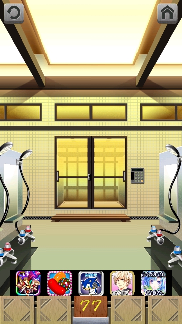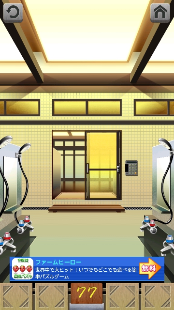 100銭湯 攻略 脱出法 ステージ76~80 |Page2 脱出ゲーム 更新日時:2015年7月23日 1:53 AM ページタイトルとURLをコピーする ステージ77 スワイプして富士山の画面へ。 お花が咲いています。 洗面台を調べます。 ドア画面の左は イチゴ(春) 右はひまわり(夏) スワイプして富士山の画面へ。 洗面台の左は 紅葉(秋) 右は雪だるま(冬) 富士山の画面が春なので イチゴの鏡をずらすと 139702 これをドア右の装置に 入力して、エンターを押すと ドアが開きます。 ページ: 1 2 3 4 5 前ページへ 次ページへ SQOOLのYouTubeチャンネル スポンサーリンク
