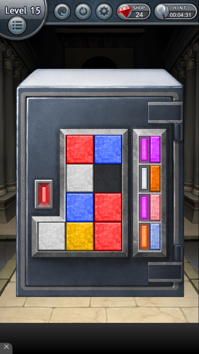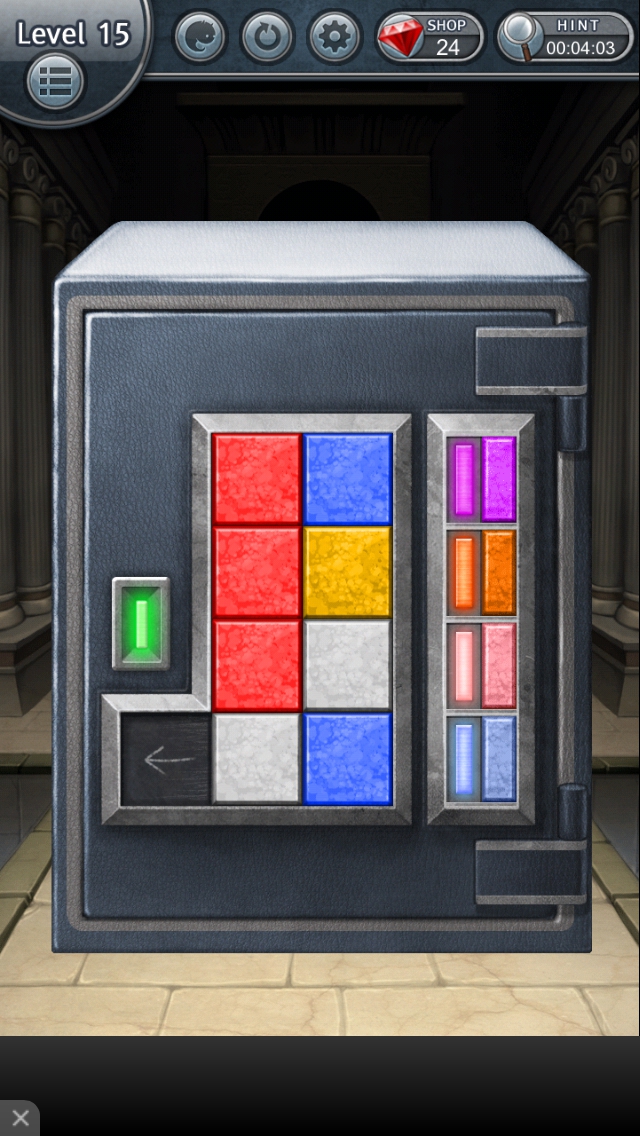 130XES ステージ11~15 攻略|脱出ゲーム攻略 |Page5 脱出ゲーム 更新日時:2015年10月5日 7:15 AM ページタイトルとURLをコピーする ステージ15 パズルのピースを右の色に合うように そろえます。 一段目 赤と青のピースで紫 二段目 赤と黄でオレンジ 三段目 赤と白でピンク 四段目 白と青で水色 ランプが緑になります。扉が開きます。 ステージ11 ステージ12 ステージ13 ステージ14 ステージ15 脱出ゲーム 130XES 攻略記事一覧 ページ: 1 2 3 4 5 前ページへ SQOOLのYouTubeチャンネル スポンサーリンク