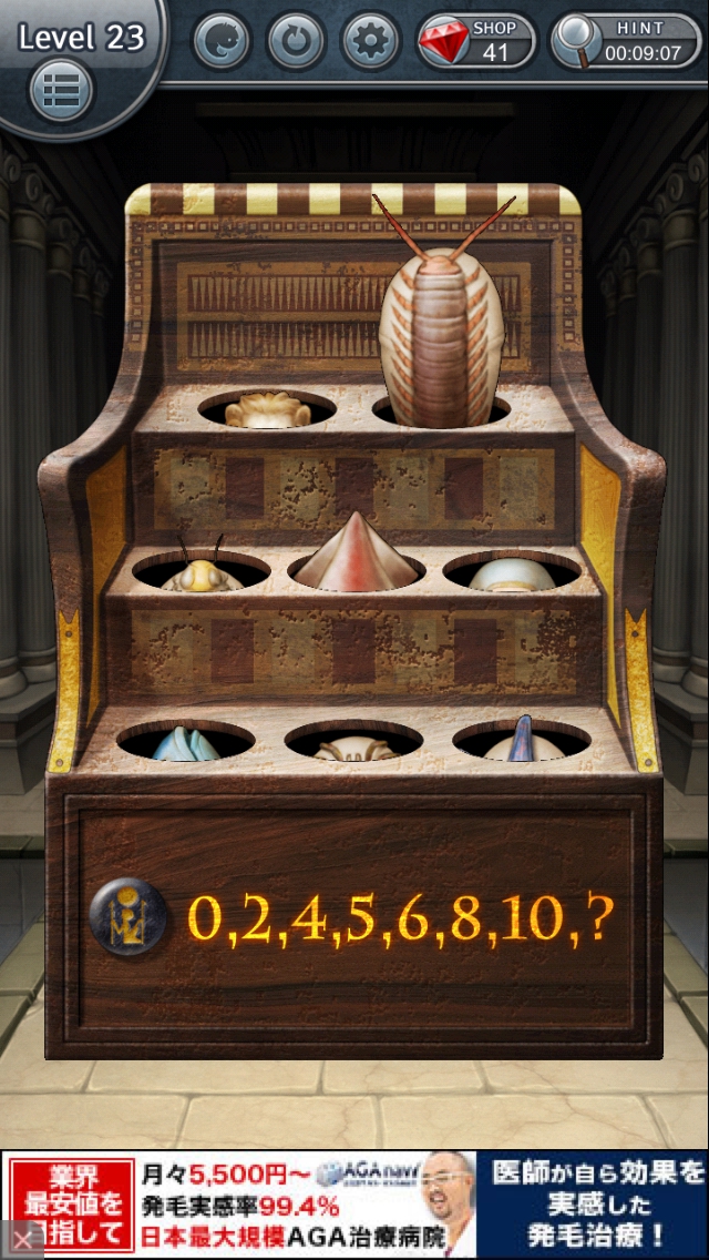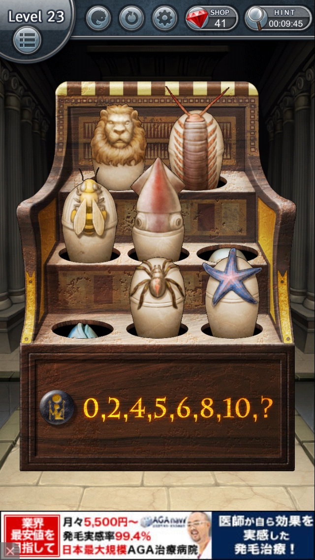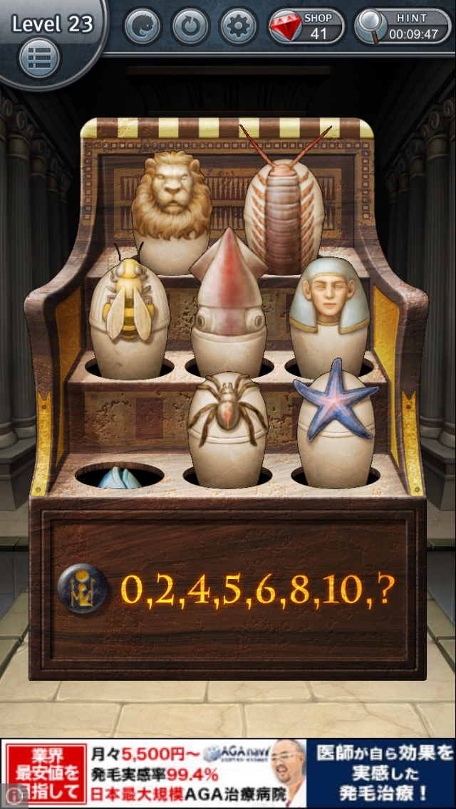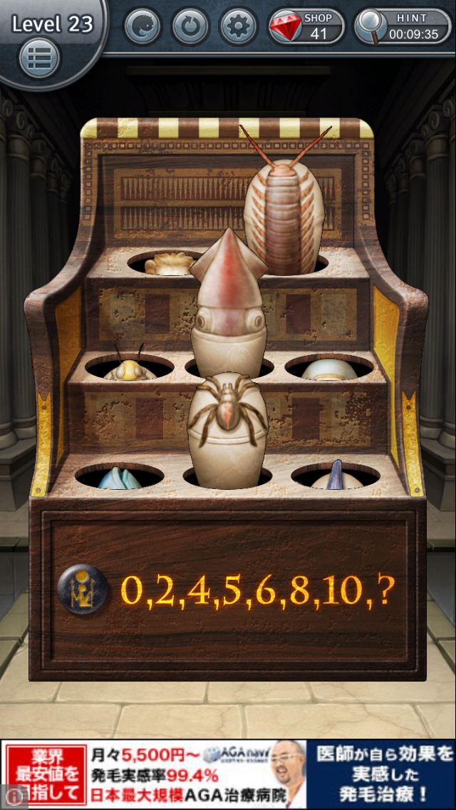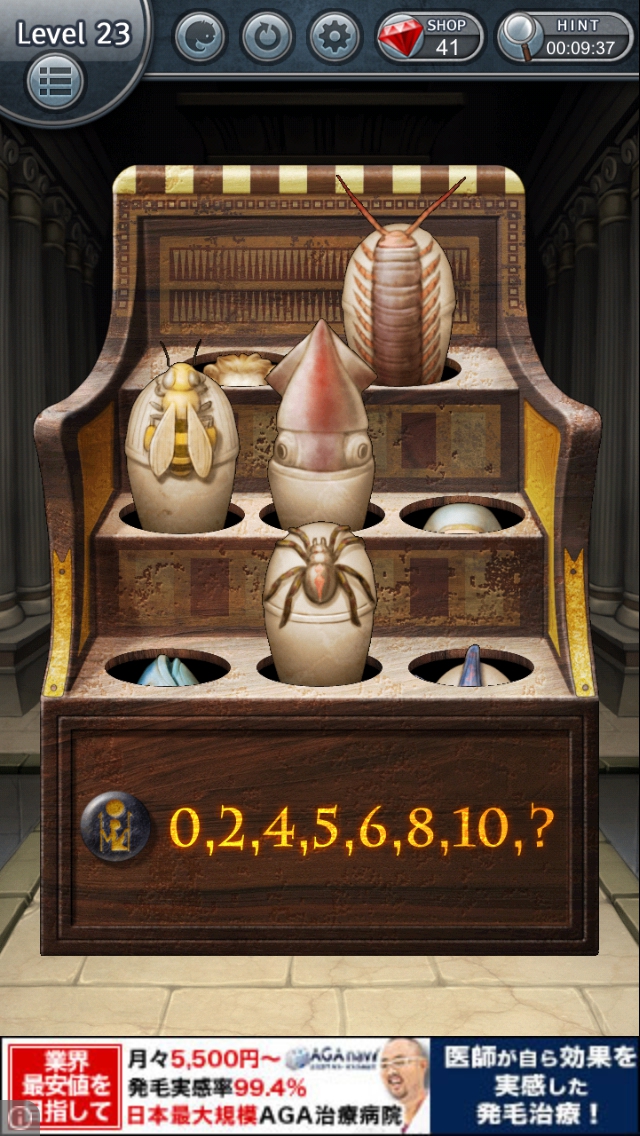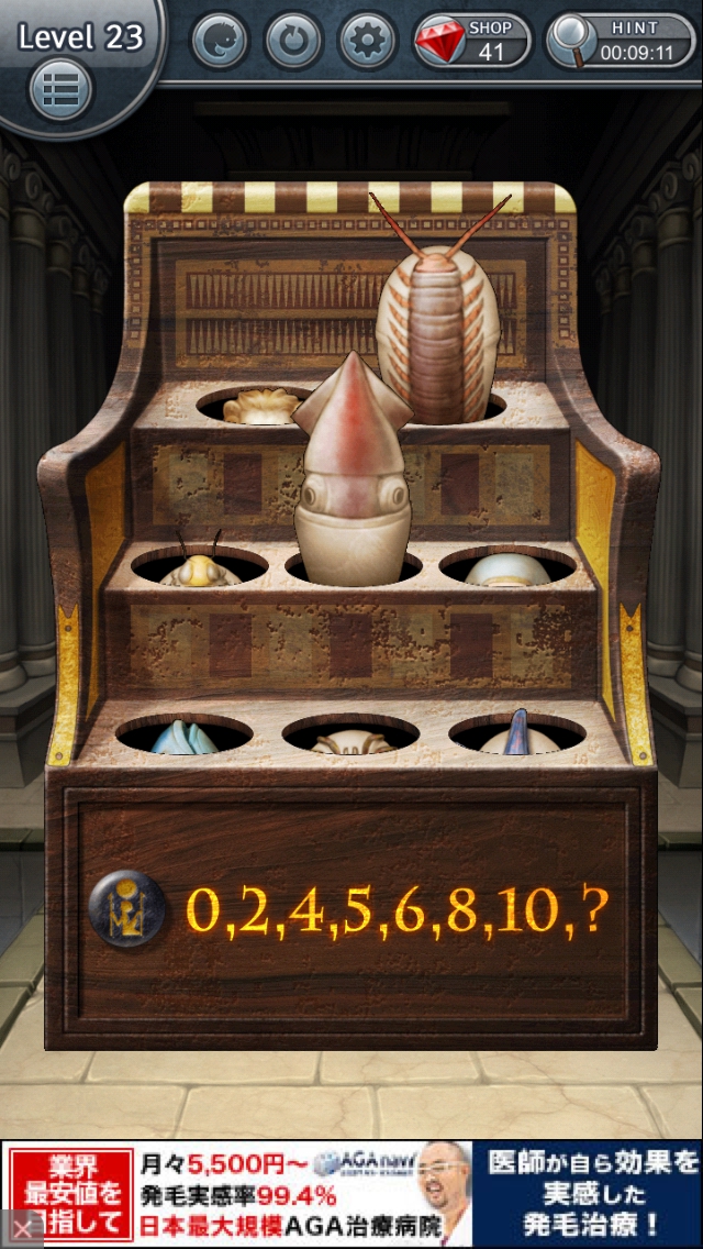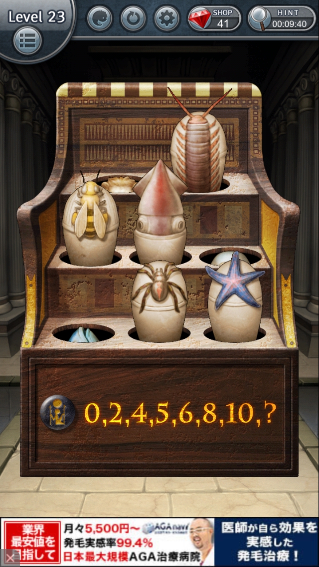 130XES ステージ21~25 攻略|脱出ゲーム攻略 |Page3 脱出ゲーム 更新日時:2015年7月22日 12:16 PM ページタイトルとURLをコピーする ステージ23 足の数が少→多の順にタップします。 魚 人 ライオン ヒトデ ハチ クモ イカ ムカデ 扉が開きます。 ステージ21 ステージ22 ステージ23 ステージ24 ステージ25 脱出ゲーム 130XES 攻略記事一覧 ページ: 1 2 3 4 5 前ページへ 次ページへ SQOOLのYouTubeチャンネル スポンサーリンク