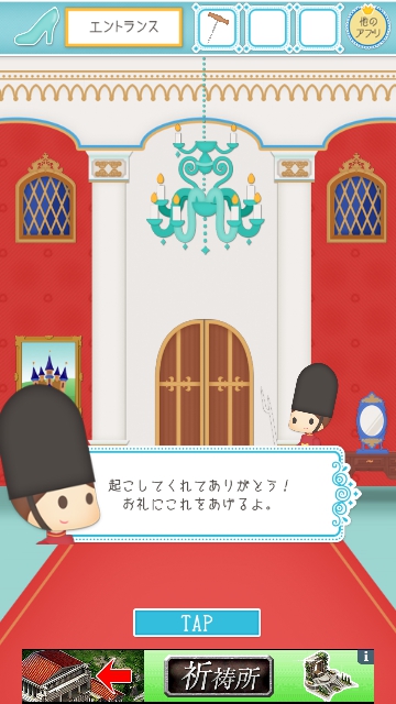 謎解きシンデレラ 攻略 その2|脱出ゲーム攻略 |Page2 脱出ゲーム 更新日時:2015年7月22日 12:16 PM ページタイトルとURLをコピーする このままの状態で携帯を揺さぶって ガードマンを起こしてあげましょう。 するとお礼に コルク抜きをくれます。 (アイテムに入ります) ダイニングフロアに移動して ワインを手に入れます。 調べると ワインに栓がしてあるので アイテムのコルク抜きを使って 栓を抜きましょう。 その3に続きます。 脱出ゲーム 謎解きシンデレラ 攻略記事一覧 ページ: 1 2 前ページへ SQOOLのYouTubeチャンネル スポンサーリンク
