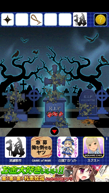 左の墓の台座をタップして拡大。
