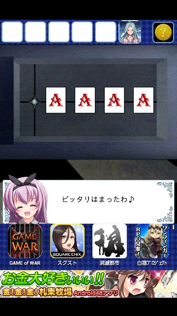 すると「AAAA」と4枚のカードが出ます。