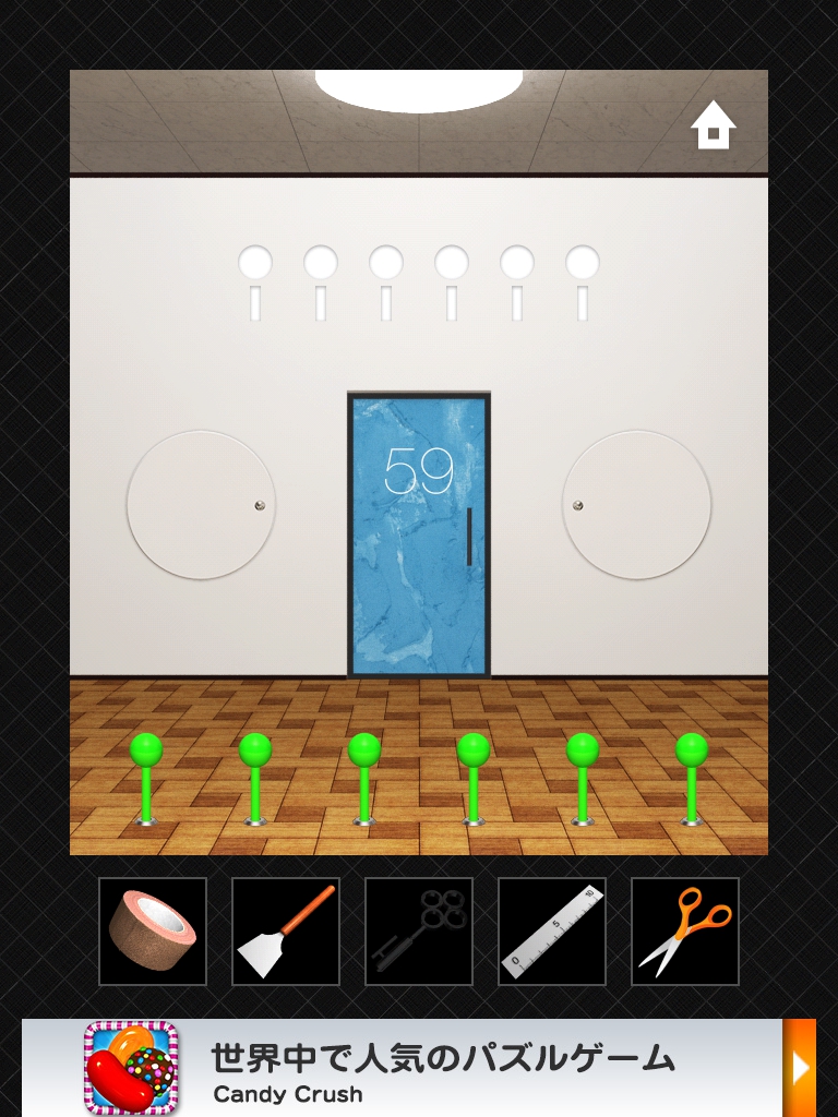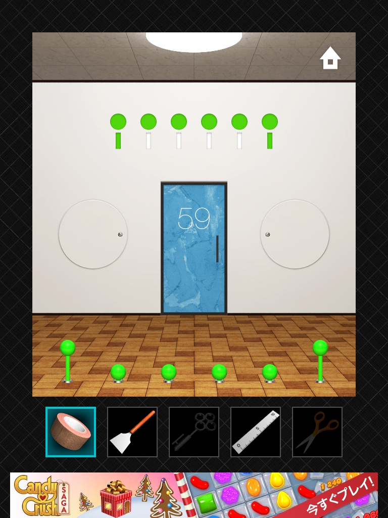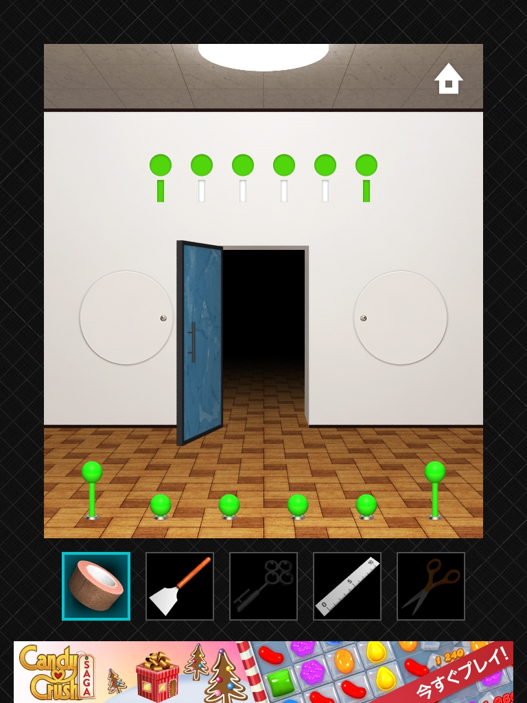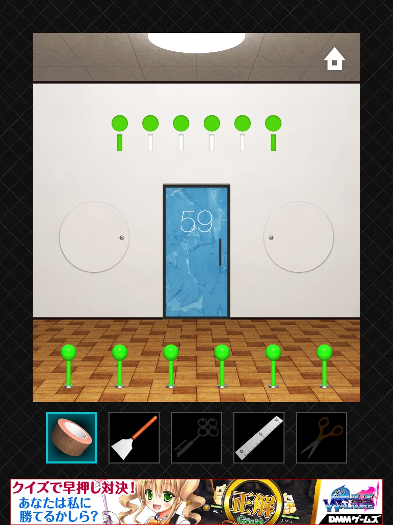 DOORS3 攻略 ステージ56~60|脱出ゲーム攻略 |Page2 脱出ゲーム 更新日時:2015年7月23日 1:57 AM ページタイトルとURLをコピーする ステージ58 1日は24時間なので24と入力します。 1年は24*365で 8760 時間。 時計の文字盤と同じ並びになるように 8 2 を入力します。 ステージ59 ドアの右の装置をタップします。 同じ色の線が繋がっています。 左側の装置です。 ハサミで切って ガムテープでつなぎ直します。 ドアの上に模様が出ました。 手前の装置をタップして、ドアの上の模様と揃えます。 同じピンを2回タップすると隣のピンを操作できるのがポイントです。 ステージ60 れーざーが出ています。 左右と床の上のスイッチのようなももにガムテープを貼ると、レーザーが止まります。 左の装置のボタンをヘラで持ち上げます。 同じく右の装置もへらでボタンを持ち上げます。 ドアの左側の黒い溝の隙間に鍵があります。 定規を使って取ります。 DOOORS3攻略記事一覧 ページ: 1 2 前ページへ SQOOLのYouTubeチャンネル スポンサーリンク