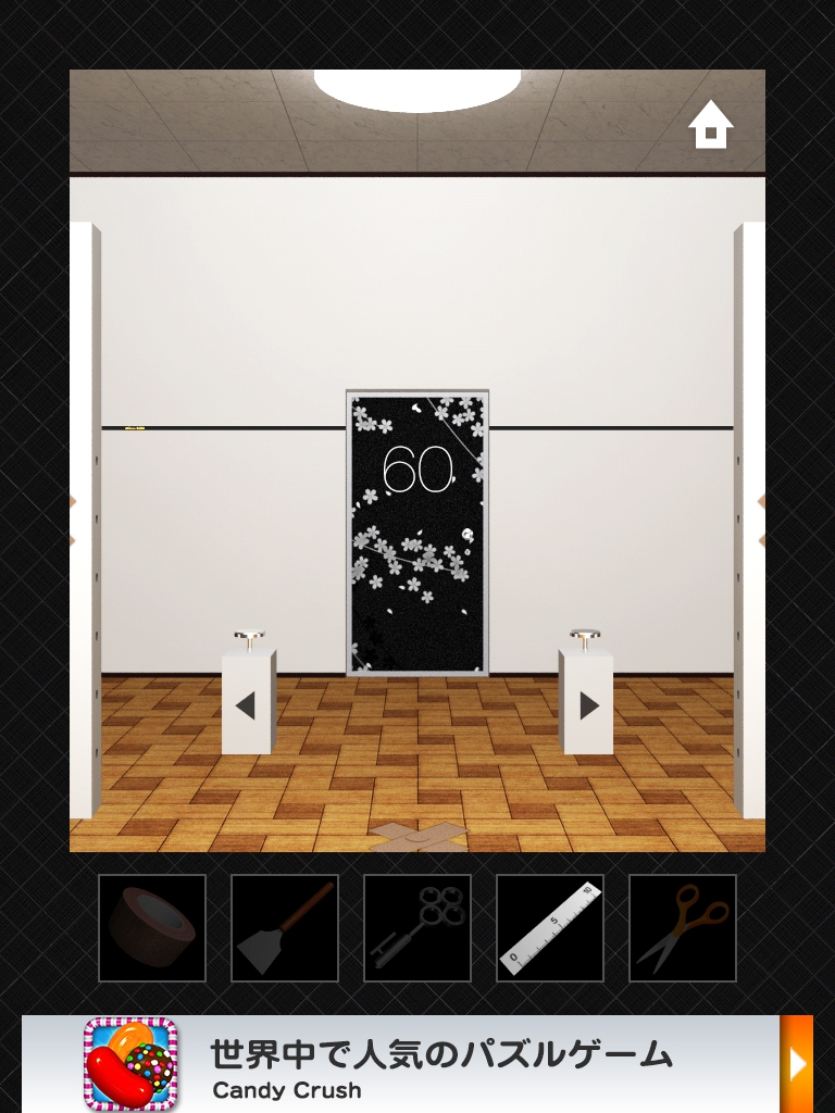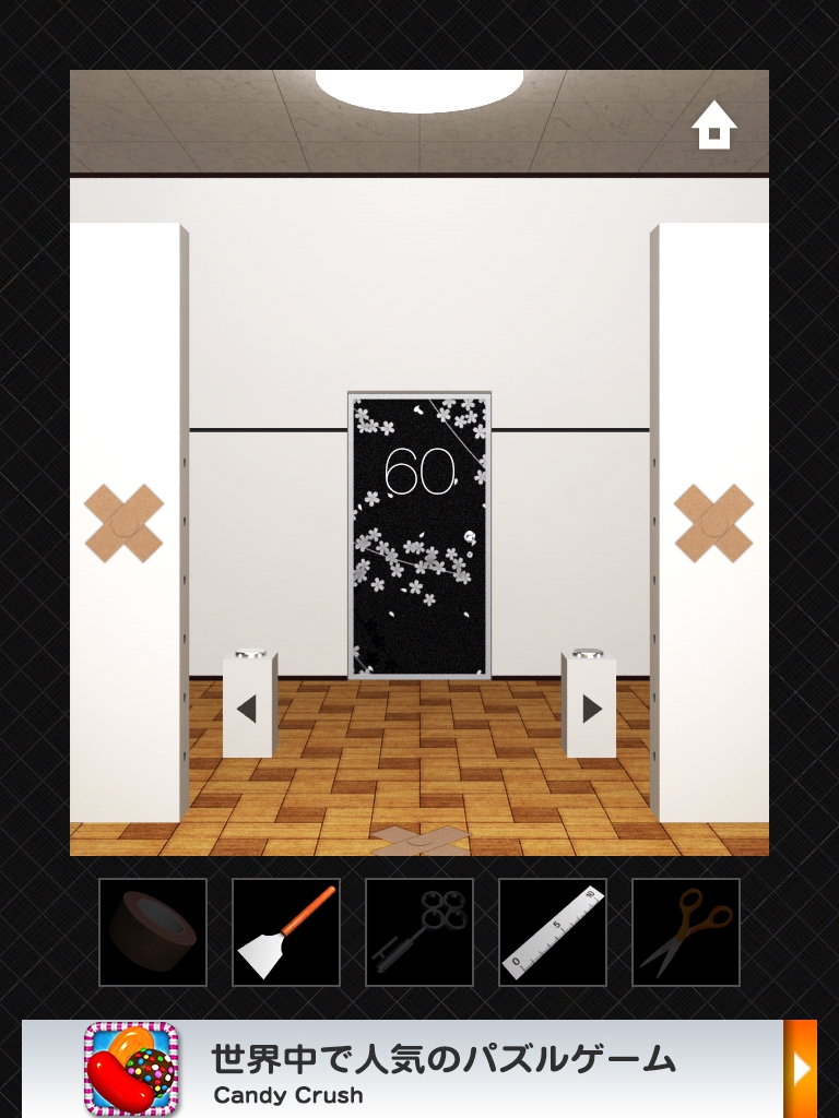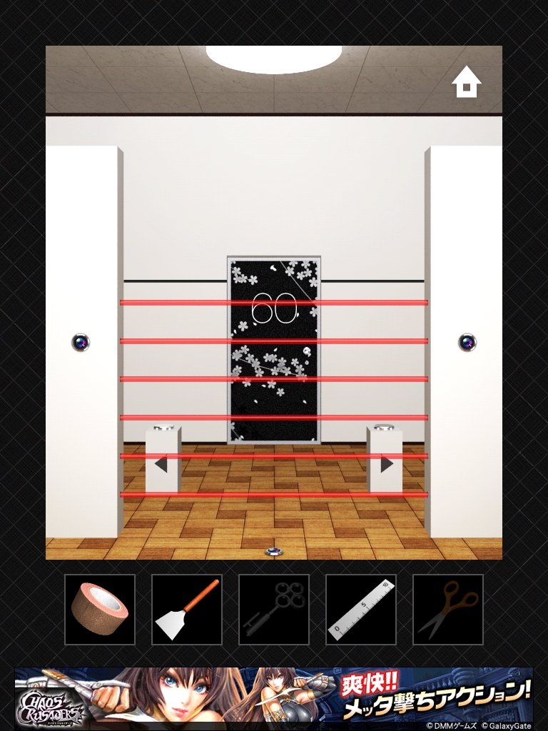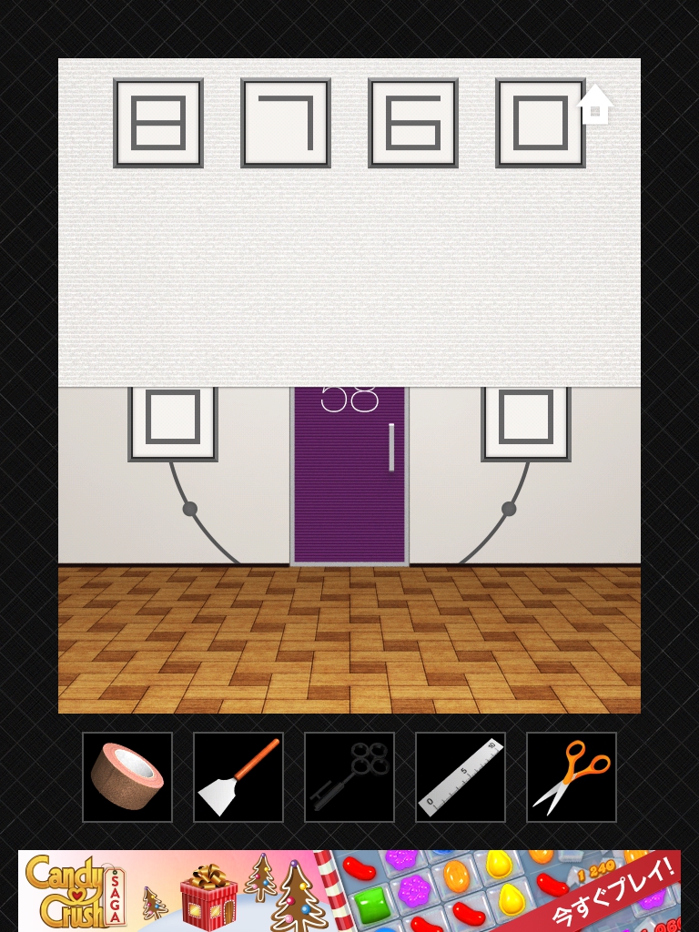 DOORS3 攻略 ステージ56~60|脱出ゲーム攻略 |Page2 脱出ゲーム 更新日時:2015年7月23日 1:57 AM ページタイトルとURLをコピーする ステージ58 1日は24時間なので24と入力します。 1年は24*365で 8760 時間。 時計の文字盤と同じ並びになるように 8 2 を入力します。 ステージ59 ドアの右の装置をタップします。 同じ色の線が繋がっています。 左側の装置です。 ハサミで切って ガムテープでつなぎ直します。 ドアの上に模様が出ました。 手前の装置をタップして、ドアの上の模様と揃えます。 同じピンを2回タップすると隣のピンを操作できるのがポイントです。 ステージ60 れーざーが出ています。 左右と床の上のスイッチのようなももにガムテープを貼ると、レーザーが止まります。 左の装置のボタンをヘラで持ち上げます。 同じく右の装置もへらでボタンを持ち上げます。 ドアの左側の黒い溝の隙間に鍵があります。 定規を使って取ります。 DOOORS3攻略記事一覧 ページ: 1 2 前ページへ SQOOLのYouTubeチャンネル スポンサーリンク