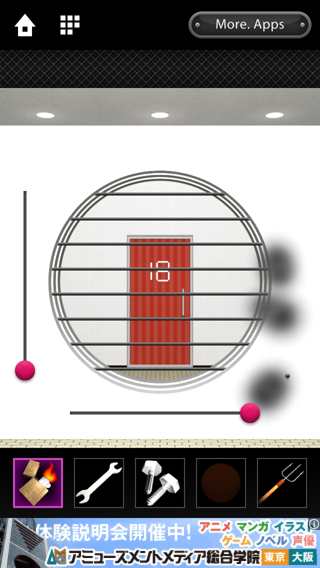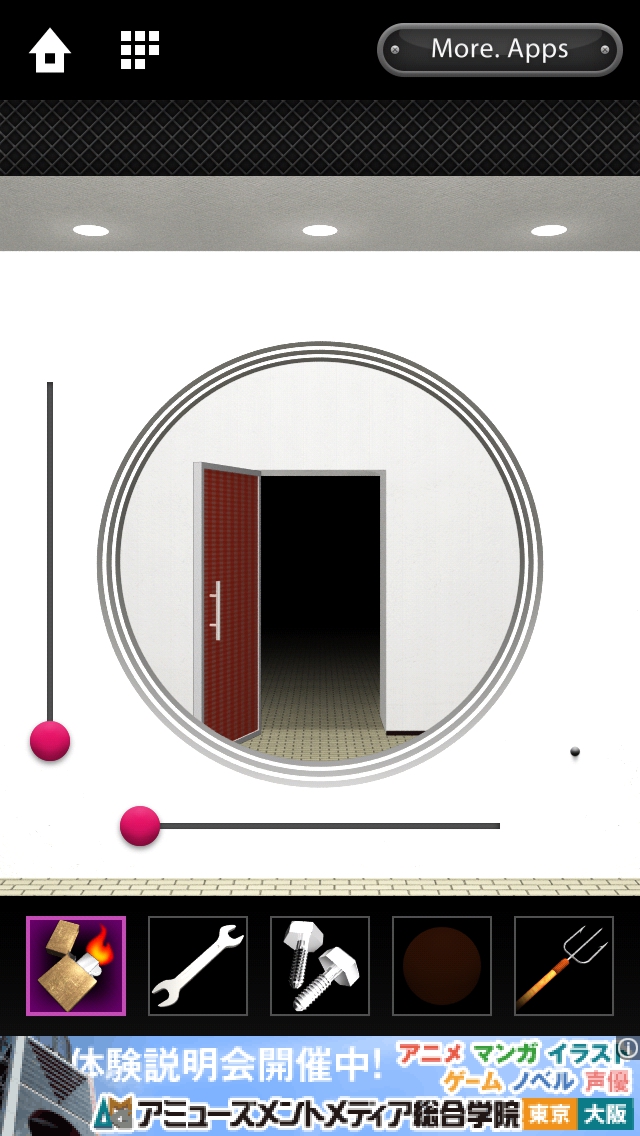 DOOORS4 攻略 ステージ16~20|脱出ゲーム攻略 |Page3 脱出ゲーム 更新日時:2015年7月23日 1:53 AM ページタイトルとURLをコピーする ステージ18 左上のピンクのツマミをスワイプして下へ 移動させます。 右のピンクのツマミを止めているひもを ライターで燃やします。 右のピンクのツマミを左へ移動させます。 ドアが開きます。脱出しましょう。 ステージ16 ステージ17 ステージ18 ステージ19 ステージ20 脱出ゲーム DOORS4 攻略記事一覧 ページ: 1 2 3 4 5 前ページへ 次ページへ SQOOLのYouTubeチャンネル スポンサーリンク