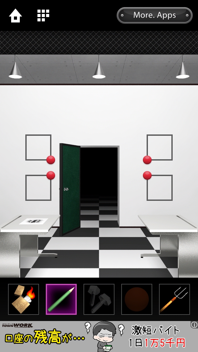 DOOORS4 攻略 ステージ21~25|脱出ゲーム攻略 |Page3 脱出ゲーム 更新日時:2015年7月23日 1:53 AM ページタイトルとURLをコピーする ステージ23 右の机をタップすると裏に鉛筆があるので 取ります。 左の机の上の白い紙に鉛筆を使うと 絵が出てきます。 ドアの横の4つの赤いツマミを先ほどの絵 に合わせて動かします。 ドアが開きます。脱出しましょう。 ステージ21 ステージ22 ステージ23 ステージ24 ステージ25 脱出ゲーム DOORS4 攻略記事一覧 ページ: 1 2 3 4 5 前ページへ 次ページへ SQOOLのYouTubeチャンネル スポンサーリンク