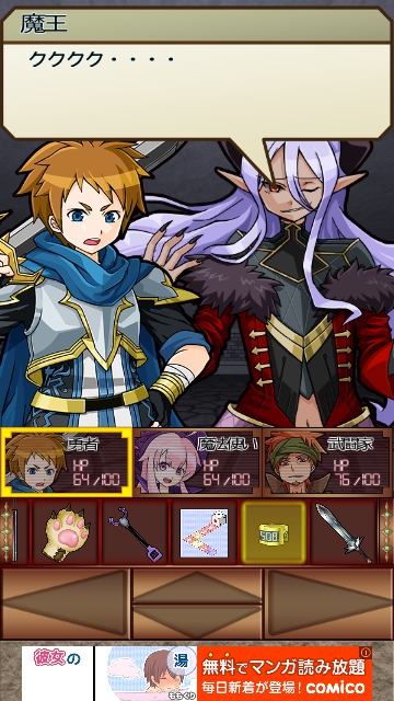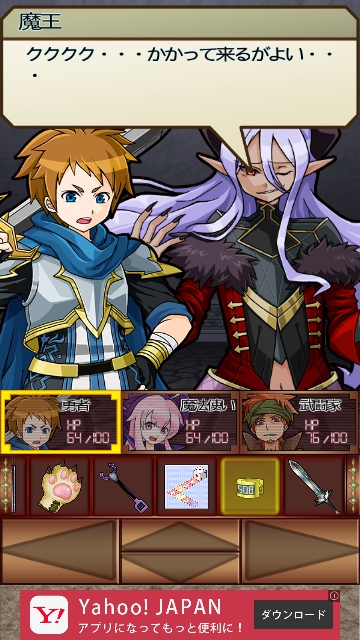 魔王城からの脱出 救出編 攻略 その6 |Page2 脱出ゲーム 更新日時:2015年7月23日 1:53 AM ページタイトルとURLをコピーする すると 開きます。 中に入り 中央のクボミに「破魔の腕輪」を使います。 開きます。 中へ進むと 姫が現れます。 魔王も現れます。 魔王との決戦です。 ページ: 1 2 3 前ページへ 次ページへ SQOOLのYouTubeチャンネル スポンサーリンク