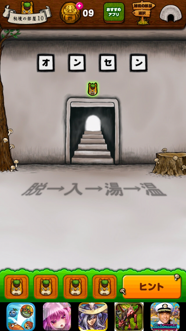 秘境 グンマーからの脱出 本編 ステージ6~10 |Page5 脱出ゲーム 更新日時:2015年7月23日 1:53 AM ページタイトルとURLをコピーする ステージ10 漢字 脱→入→湯→温 から連想する言葉 を扉の上に作ります。 「オンセン」にします。 扉から出ましょう。 秘境 グンマーからの脱出 攻略記事一覧 ページ: 1 2 3 4 5 前ページへ SQOOLのYouTubeチャンネル スポンサーリンク