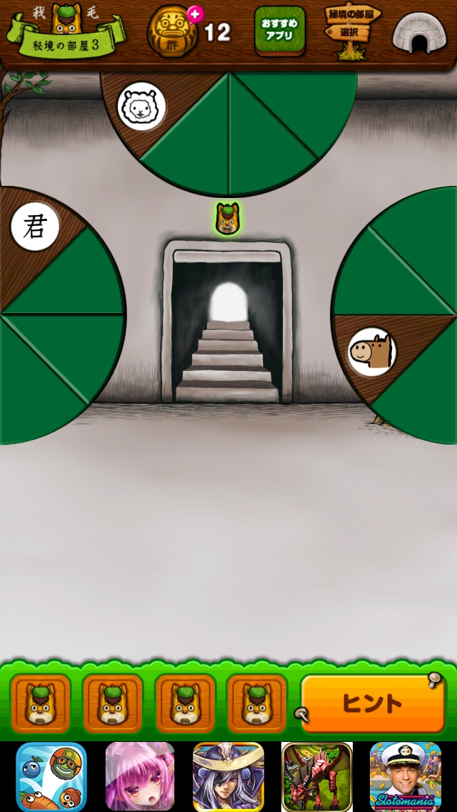 秘境 グンマーからの脱出 番外編 ステージ1~5 |Page3 脱出ゲーム 更新日時:2015年7月23日 1:53 AM ページタイトルとURLをコピーする ステージ3 群馬という漢字をバラして3文字にします。 君 羊 馬 君 羊 馬 となるよう緑の半円のピースを タップします。 扉から出ましょう。 ページ: 1 2 3 4 5 前ページへ 次ページへ SQOOLのYouTubeチャンネル スポンサーリンク