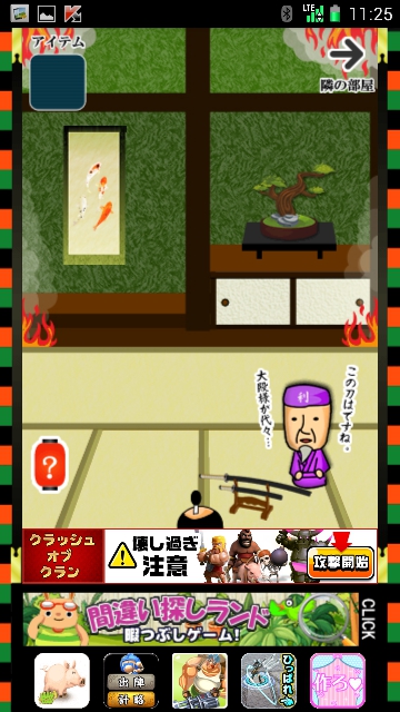 利休と信長の間に刀があります。タップしてゲット。