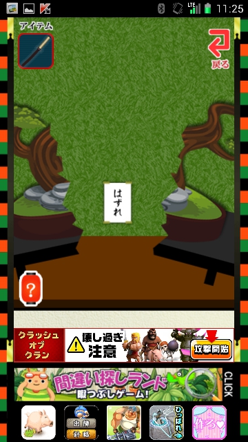 刀を使って、いろいろ斬ってみます。掛け軸はハズレ。