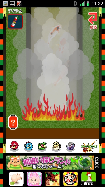 消火器を使って掛け軸をタップ。火が消えます。