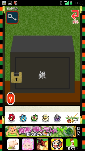 「銀」と書いてあります。ゲットした銀のカギを使って、錠をタップ。