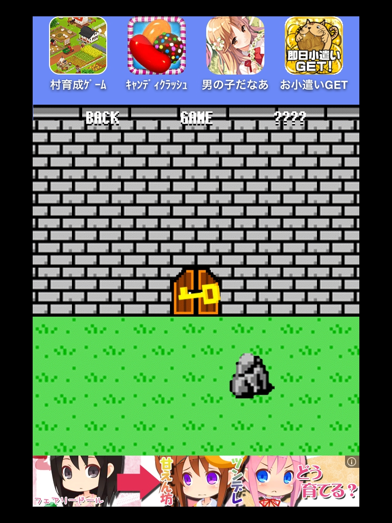 木をタップすると鍵が右の画面にはねて行きます。