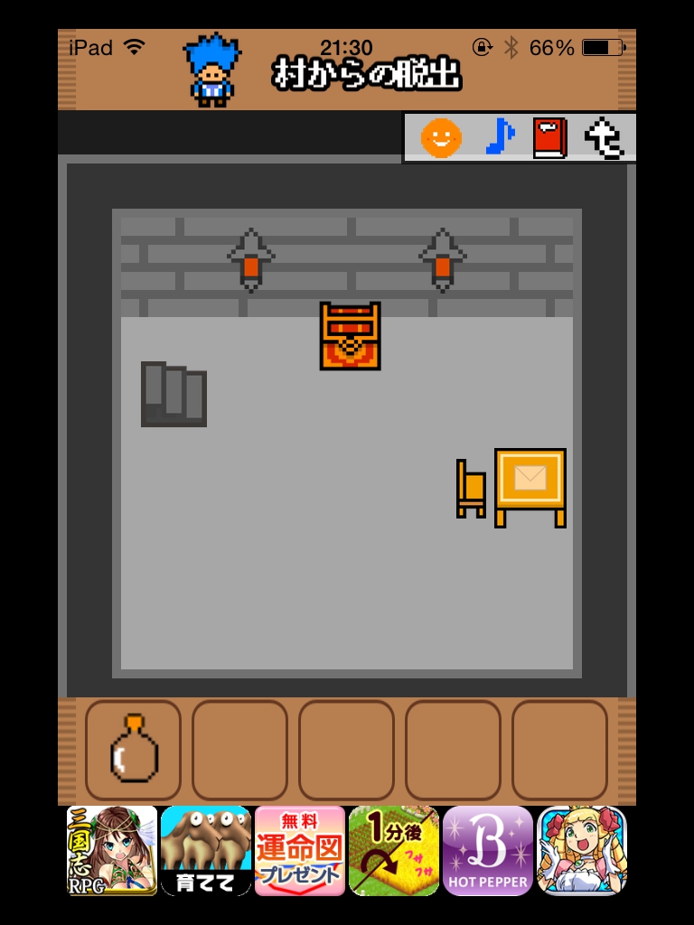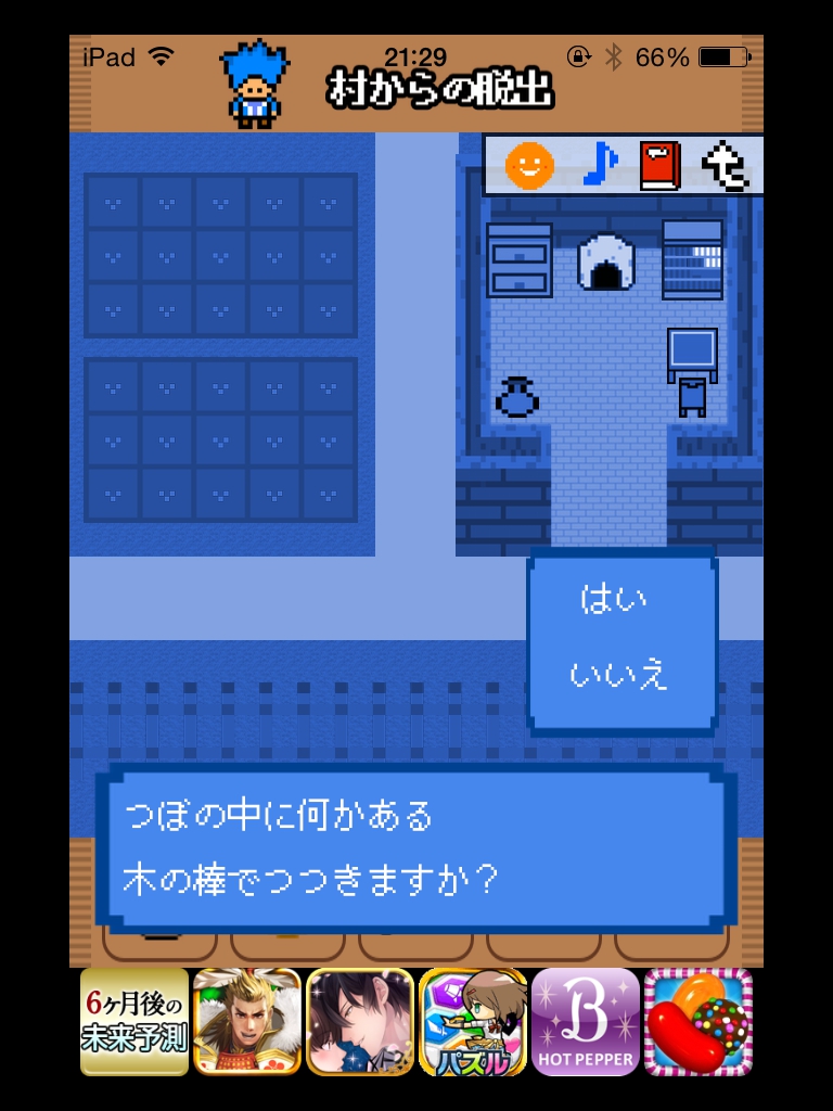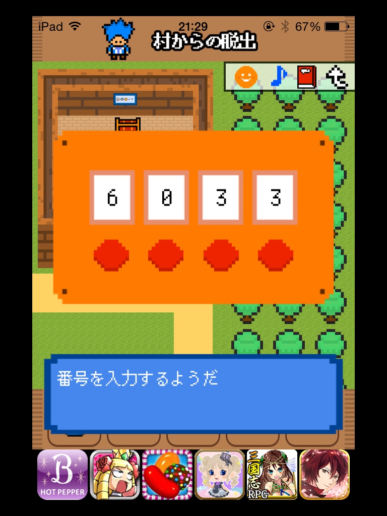 村からの脱出 旅立ちの勇者 攻略 |Page3 脱出ゲーム 更新日時:2015年7月23日 2:01 AM ページタイトルとURLをコピーする マップ右上の宝箱をタップして 6033と入れます。 ※App Storeのスクリーンショットより。 ミスで正解が6233となってしまっているようです。 バージョンアップで修正されるまでは6233と入れてください。 コインが手に入りました。 夜にします。 たき火に水をかけて木の棒を取りましょう。 木の棒で壺を突っつきます。 マップの左下に道が出来ています。 木にコインをセットします。 マップの右下に道が出来ています。 階段を下りて、テーブルの上の手紙を読みましょう。 鍵が手に入るので宝箱を空けます。 村の出口の兵士に話しかけます。 朝にして、 おかあさんに話しかけましょう。 村から脱出! 旅立ちです。 ページ: 1 2 3 前ページへ SQOOLのYouTubeチャンネル スポンサーリンク