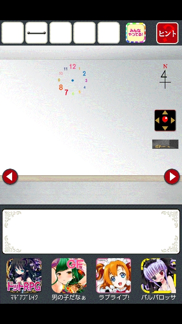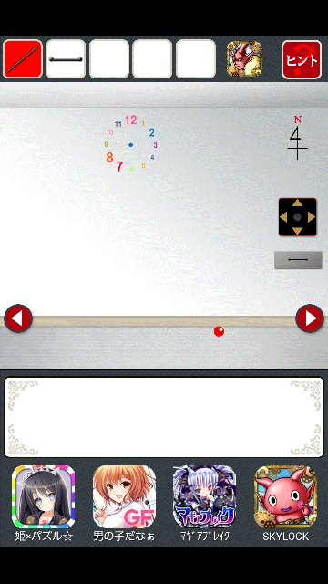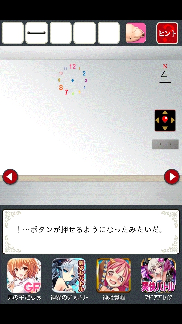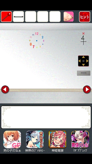 時計のある部屋に移動。床に赤いモノがあります。タップで拡大。