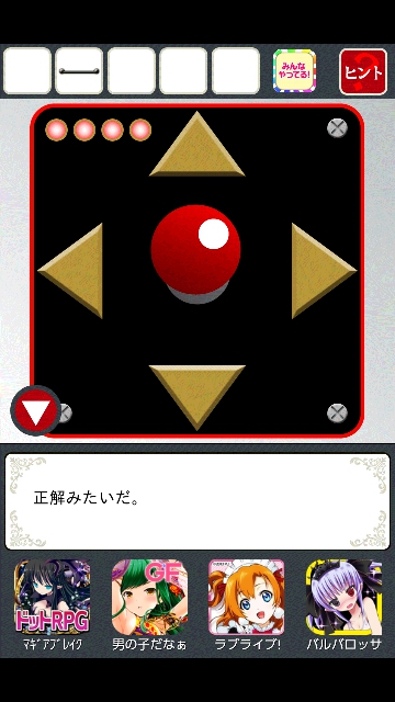 「赤い玉を持ち、北へ2歩 東の反対へ2歩」でした。