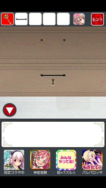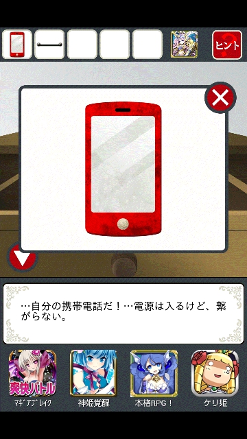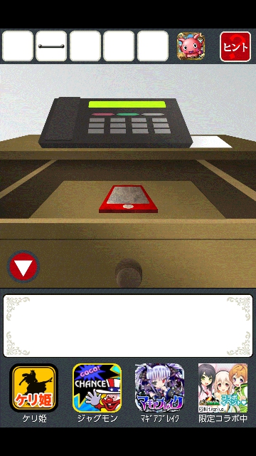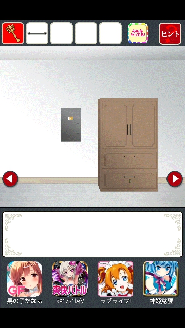 ヤンデレからの脱出 攻略 その1 |Page3 脱出ゲーム 更新日時:2015年7月23日 1:57 AM ページタイトルとURLをコピーする たんすのある部屋に移動します。 「鍵」を使って、たんすの下段をタップ。 引き出しが開きます。中の赤いボタンを押します。 机のある部屋に移動します。 開かなかっ机のた引き出しが開きました。 中の「携帯電話」をタップ。 「携帯電話」をゲット。 お花のある部屋に移動します。テーブルの左上の足が黒いです。 右に円形のパネルがあります。 たんすの「取手」を使って、円形のパネルをタップ。 携帯電話が鳴り始めます。 またもや、たまらないキャラの登場です。彼女は「ちあき」です。 携帯電話が切れました。取手には「ロープの跡」があります。 ページ: 1 2 3 4 5 6 7 前ページへ 次ページへ SQOOLのYouTubeチャンネル スポンサーリンク