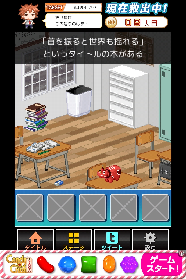 積まれた本をタップしてヒントを得る。