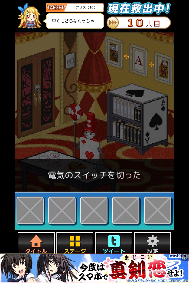 トランプのキャラクターをタップしてヒントを得る。