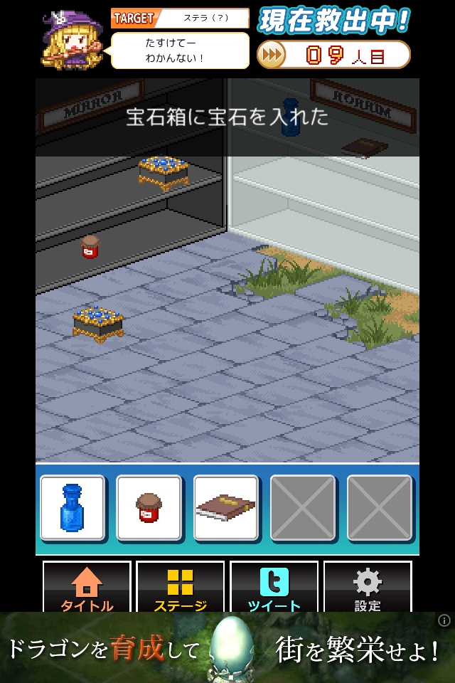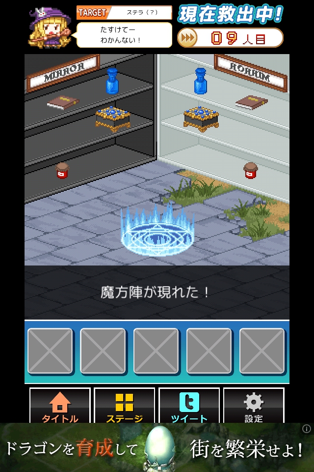 左右対称になるようにアイテムを配置し、出現した魔法陣で脱出する。