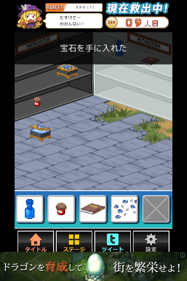 青い瓶、赤い瓶、本、宝石を入手する。