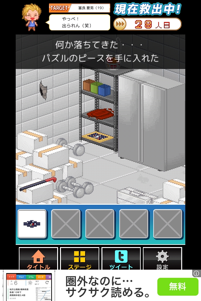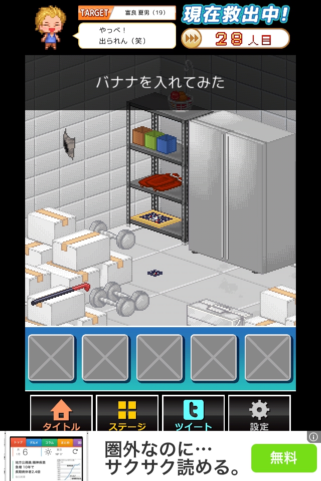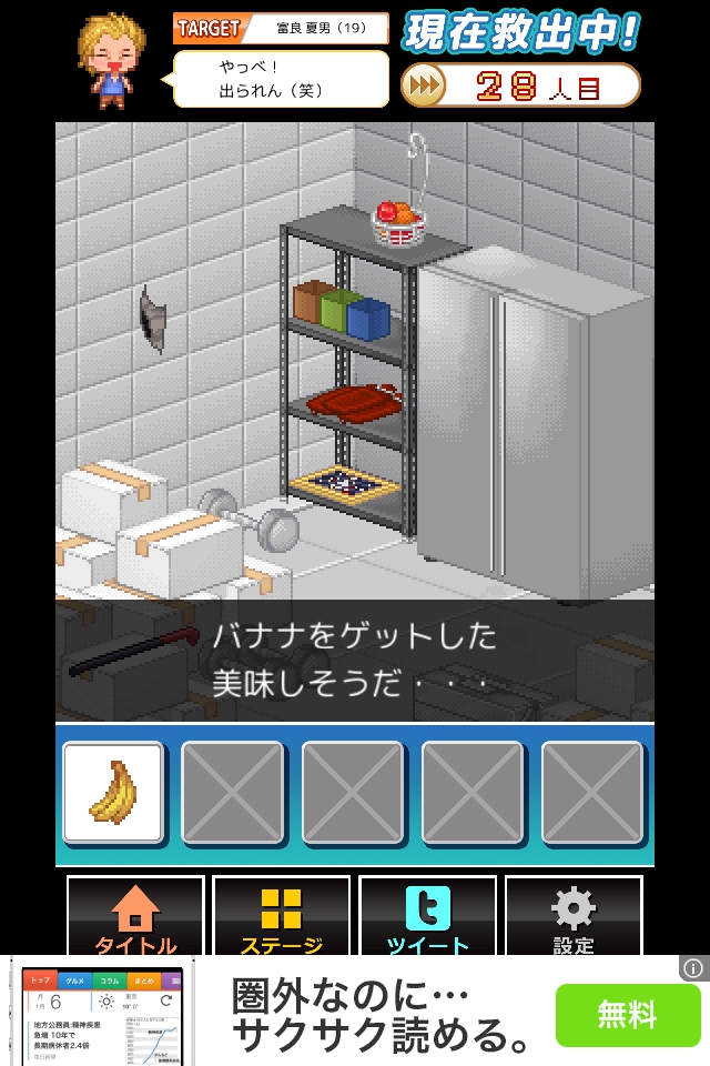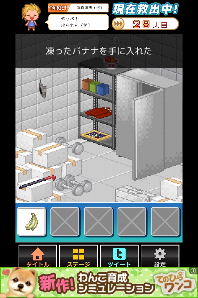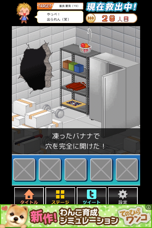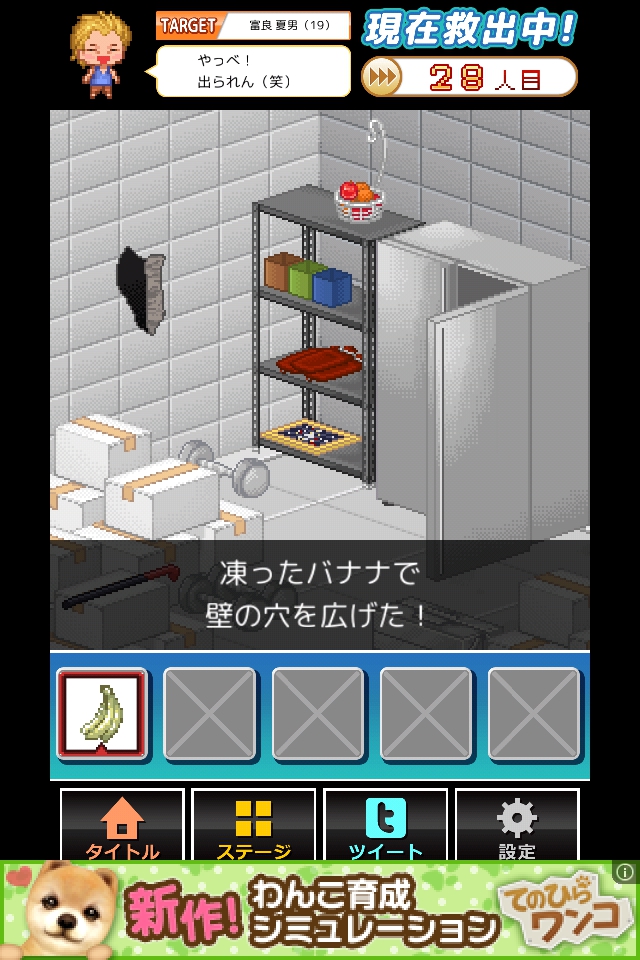 凍ったバナナを装備して壁の穴を何度かタップし、脱出する。
