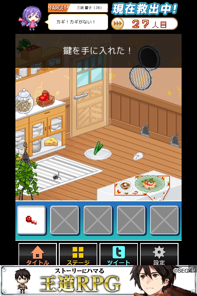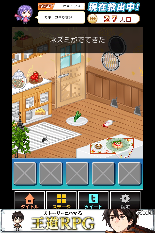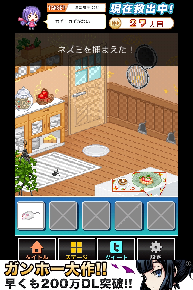 ネズミが持ってきた鍵を入手し、脱出する。