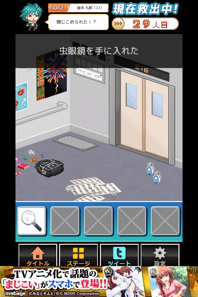 左下の鞄をタップし、虫眼鏡を入手する。